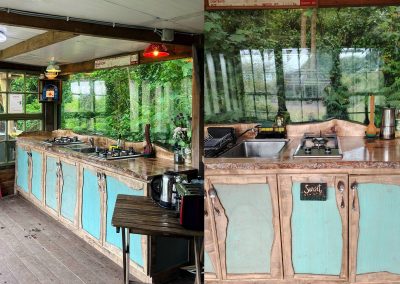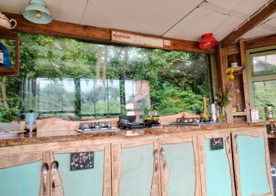 At the core of Inch Hideaway’s community spirit is The Kitchen – a welcoming, fully-equipped shared cooking space that brings glampers together. Whether you’re preparing your morning coffee or sharing an evening meal, The Kitchen offers the space and tools you need for a relaxed, sustainable stay. Every Yurt has its own cooking station provided with all you need for self catering, including a fridge and freezer and coffee & tea staion.